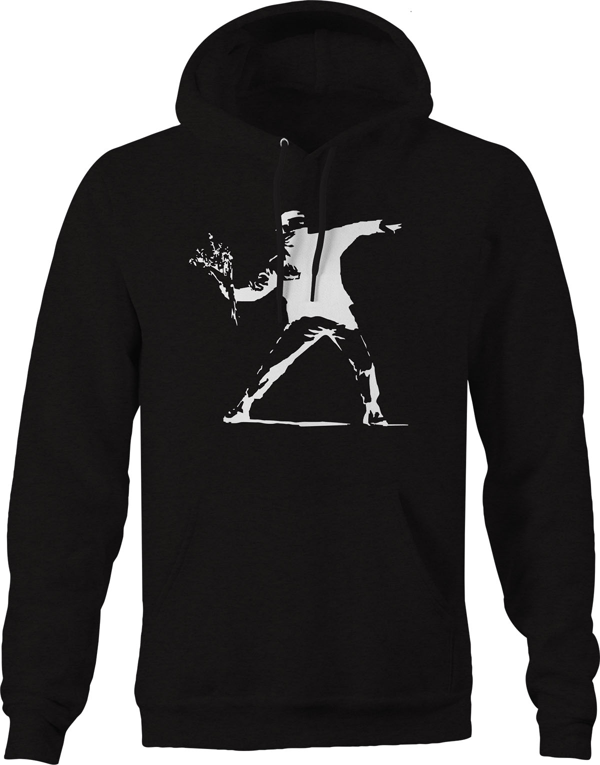 Banksy Revolution Throwing Flowers Love Pullover Hoodie Medium Black Walmart Com