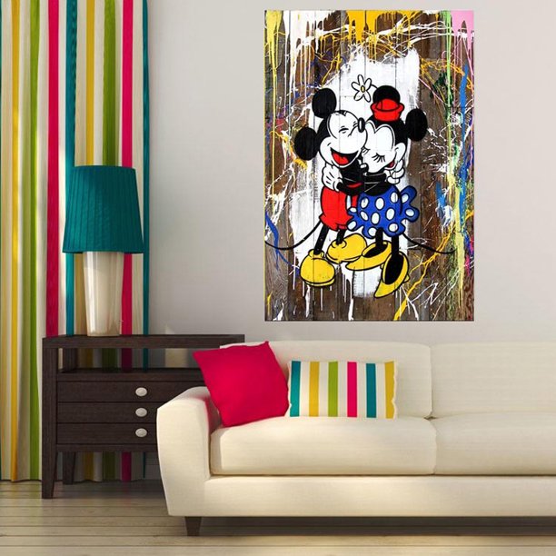 Classic Street Art Banksy Graffiti Paintings Canvas Wall Art Micky Dancing Modern Wall Decor Pictures For Home Office Bedroom Framed Walmart Com