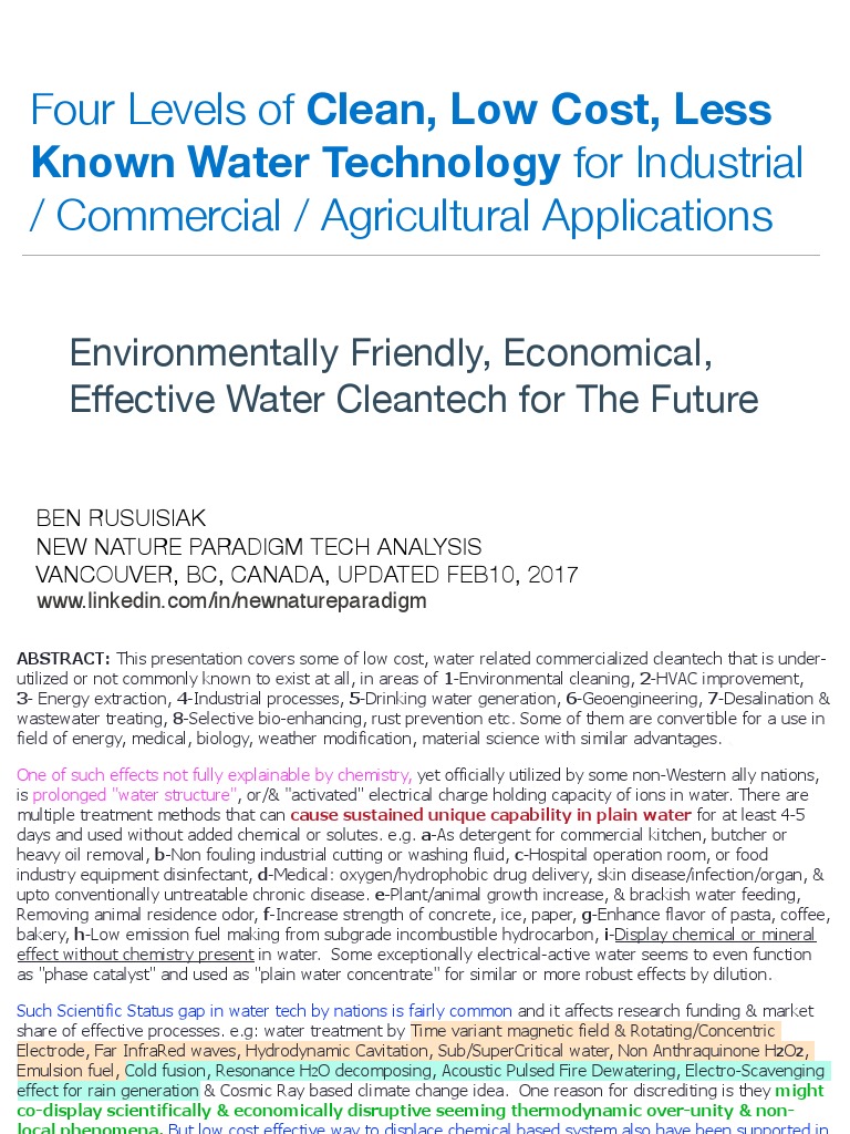 Four Levels Of Clean Low Cost Underexplored Water Tech For Industrial Commercial Farming Applications Pdf