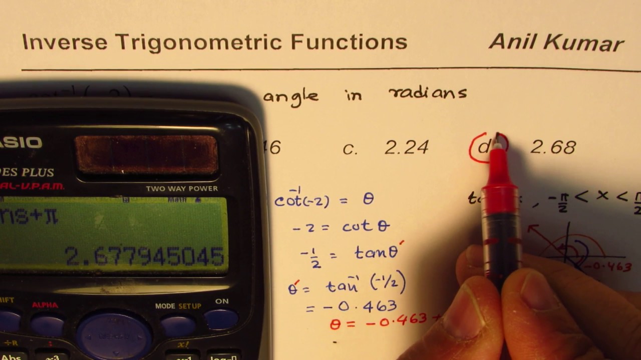 How Do I Plug In The Inverse Of Cotangent In My Calculator Fixya
