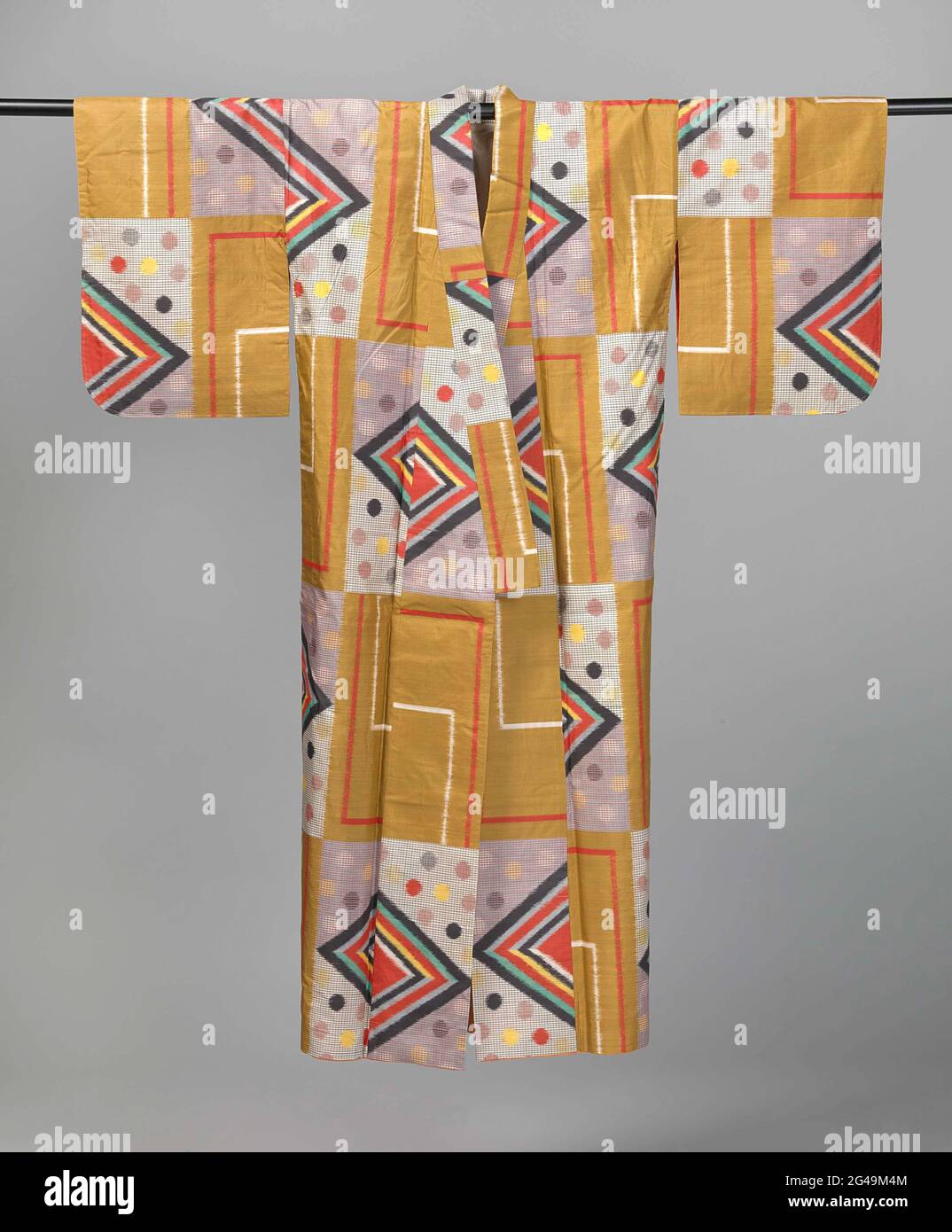 Informal Women S Kimono The Patterns On This Kimono Were Applied To The Fabric Using Stencil Printing This New Way Of Dyeing Fabric Was Simple Quick And Cost Efficient The Geometric Patterns In